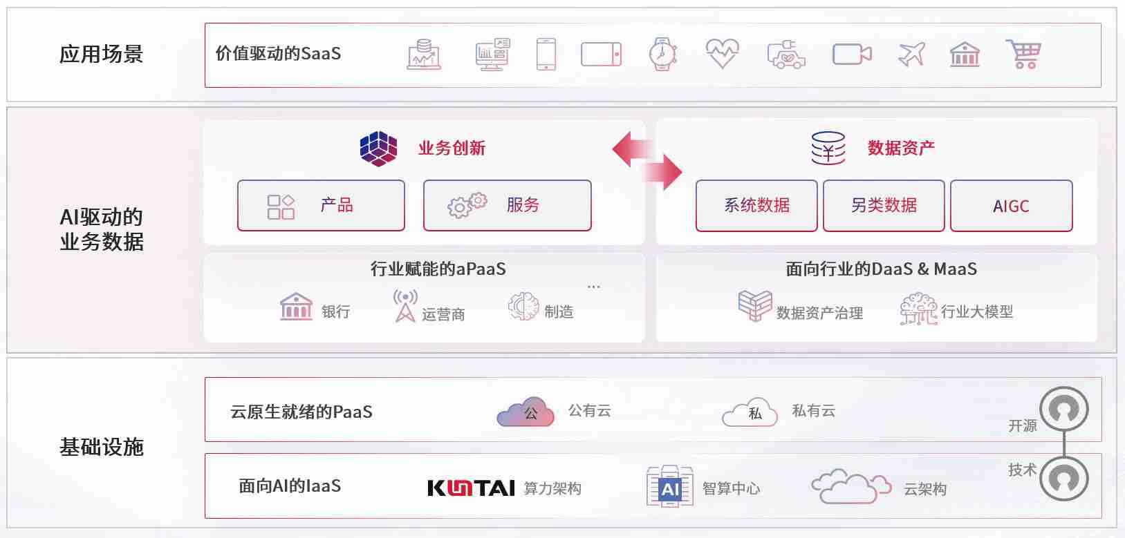 数字时代,,围绕企业数字化转型的关键要素,,,,NO钱包数码开创性的提出数云融合战略和技术体系框架,,着力在云原生、、、数字原生、、、、AI原生和信创产业上架构产品和服务能力,,,为处在不同数字化转型阶段的快消零售、、汽车、、、金融、、、医疗、、、政企、、教育、、、运营商等行业客户提供泛在的敏捷IT能力和融合的数据驱动能力,,构建跨界融合创新的数字业务场景和新业务模式,,,,助力企业级客户建立面向未来的核心能力和竞争优势,,全面推动社会的数字化、、、、智能化转型升级。。。